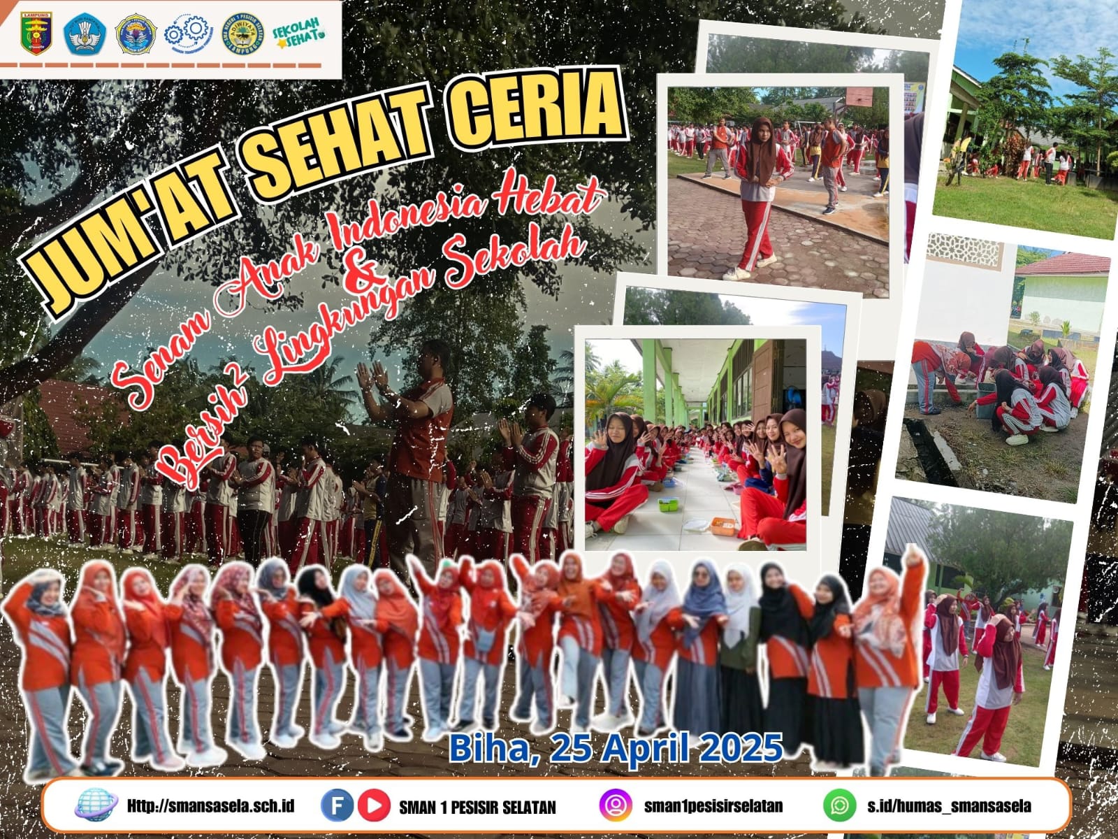 Pesisir Selatan, 25 April 2025 - SMA Negeri 1 Pesisir Selatan menggelar kegiatan senam sehat dengan tema "Indonesia Hebat" pada hari ini. Kegiatan ini diikuti oleh seluruh siswa, guru, dan staf sekolah.