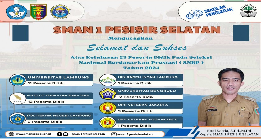 Diharapkan tahun depan akan lebih banyak lagi siswa-siswi dari SMAN 1 PESISIR SELATAN yang lolos jalur SNBP. Kesungguhan dalam bersekolah bisa menjadi kunci keberhasilan di kemudian hari.